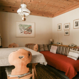 1 Doppelschlafzimmer für max. 2 Gäste, Arven- stübli mit Couch, Kochnische, Bad/WC, Sitzplatz. Rauchen ist nur auf dem Sitzplatz erlaubt.